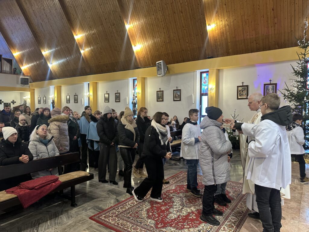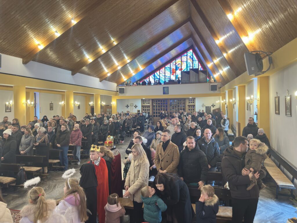 W tym dniu święcimy także kadzidło i kredę, aby okadzić nimi nasze mieszkania i oznaczyć drzwi naszych domów. Mogą to być oznaczenia „K + M + B 2025” – symbolizujące imiona Mędrców tj. Kacpra, Melchiora i Baltazara lub „C + M + B 2025” (Christus mansionem benedicat) tj. „Niech Chrystus Błogosławi temu domowi”. Po Mszy Św. o godz. 11:00 najmłodsi nasi parafianie – Dzieci z Zespołu Szkół w Gocławiu, pod kierunkiem Pań: Marzeny Muchy i Wioletty Trojanek pozwoliły nam jeszcze raz powrócić do wydarzeń z Betlejem i kontemplowania tajemnicy Wcielenia, wystawiając Jasełka.