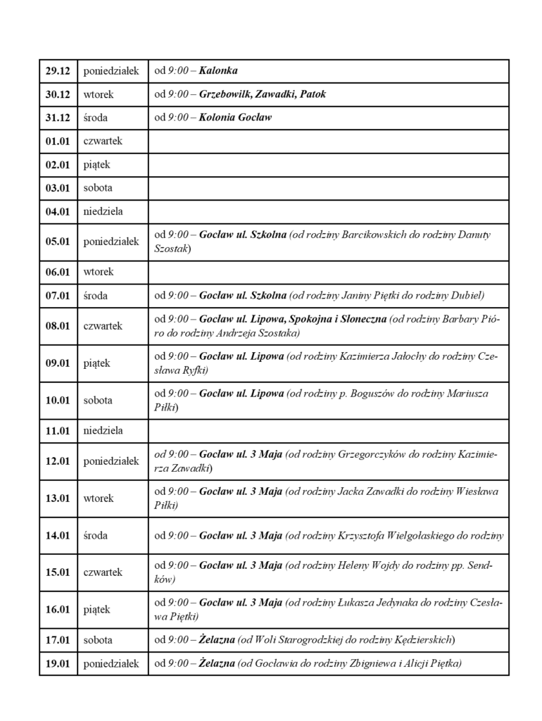 Program kolędy w naszej parafii