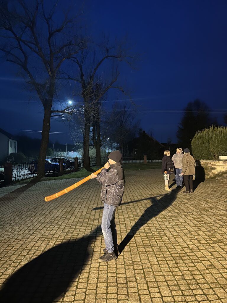Kontynuując tradycję naszych przodków, głównie mieszkańców Kalonki młodzi chłopcy przed kościołem grali na ligawkach. Jest to instrument dęty, używany m.in. w naszych okolicach od co najmniej kilku pokoleń. Ze względu na znaczne odległości pomiędzy wsiami i zabudowaniami wiejskimi, ligawka pozwalała na komunikowanie się z oddalonymi sąsiadami. Instrument ten w szczególności był używany właśnie podczas okresu adwentu, gdy gromadzono się na Roratach.